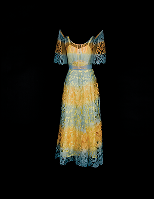 Donors Carolyn B. and Don Etter collected an exquisite Philippine baro’t saya (Tagalog for “blouse and skirt”) made in 1965. Their daughter, Carolyn B. Etter, donated this ensemble honor of the Etters. The roots of thebaro’t saya stretch back to at least the early eighteenth century, when local dress practices were recorded by Spanish colonizers. Christianized Filipinos living in the central lowlands blended traditional styles of dress, containing pre-colonial antecedents, with Spanish fashions of the day. This twentieth-century baro’t saya features historical layers of colonial influence in the Philippines, as well as ongoing artistic innovation within flexible traditional forms. The finely woven piña fiber cloth is itself a colonial innovation, since pineapples were brought from Brazil to the Philippines by the Spanish. The fine cutwork and matching shoes and clutch nod to the contemporary era in which it was made.