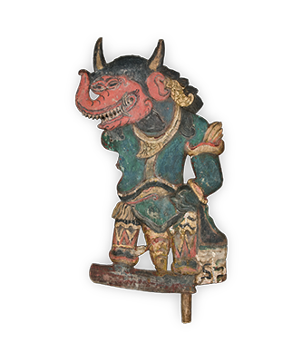 Wyang Klitit (shadow puppet), twentieth century. Wood and paint. 21 1⁄4 × 9 1⁄16 × 13⁄16 in. Gift of Thomas and Jerri Morin, Museum of International Folk Art (A.2017.66.3).