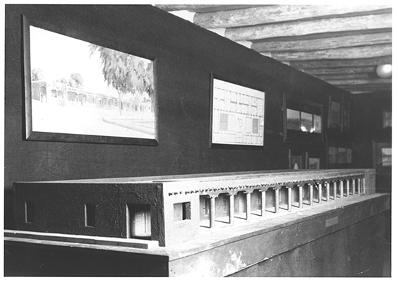 By late 1912, citizens of the capitol city were eager to participate in the latest cultural conversation: the New-Old Santa Fe exhibition. Happily, it turns out that Sylvanus Morley’s concerns were unfounded—Jesse Nusbaum and crew had completed the work on time. The exhibition opened as planned on the evening of November 18. Morley’s displays made it easy for the public to envision a future where Santa Fe Style reigned supreme. Visitors encountered a gallery richly lined with detailed maps, photographs, and drawings. Of particular interest was an impressive scaled model of the Palace of the Governors, its exterior remade in the Pueblo Revival style. Popular and persuasive, the exhibition ultimately helped change the course of Santa Fe’s architectural destiny.