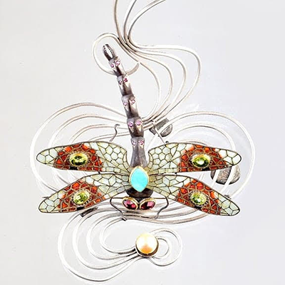 Cicada Cuff in silver, 24K gold, garnets, labrodorite by Liz Wallace (Maidu/Washoe/Navajo). Photograph courtesy of the artist.