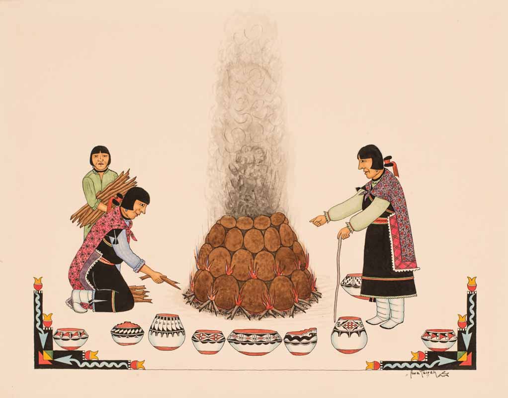 The impetus for the creation of Pueblo watercolor painting was the result of a relationship with Hewett and his employees. While pottery was acceptably made by San Ildefonso people and sold to the non-Pueblo world, there was no equivalent for watercolor paintings.