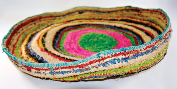 CB had never left Australia before coming to Santa Fe. She lives nine hours out in the bush. It took them thirty hours to travel here, and by the time I’d met her, she had already met with hundreds of people—writers, photographers, administrators, other vendors, and buyers. English is her third language. I watch as she poses timidly for her official IFAM portrait, as people weave in and out of the booth, picking up her woven baskets, or turning her grass sculptures over with care. Her contemporary fiber art depicts animals such as camels, dogs, and birds. The baskets and sculptures are made from dried native grasses, wool, and raffia. They are colorful and whimsical, with a surprising level of detail, given the coarse natural materials.