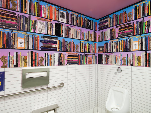Chris E. Vargas. Reading Is Transcendental, 2024. Vinyl wallpaper, 8’2.75″ x 3’8.5.” Commissioned for Scientia Sexualis exhibition at Institute for Contemporary Art, Los Angeles.