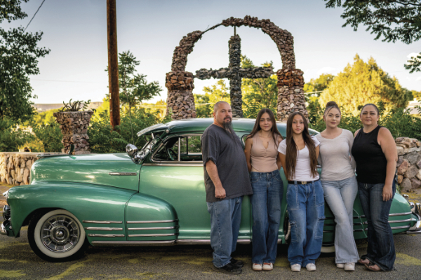 Pam Jaramillo of Chimayó says, “Lowrider culture means family.” She and her husband, Bobby Chacon, raised three daughters, each with her own ride. Together, they build more than cars; they build memory, pride, and place. “The media always brings up drugs,” she says. “That’s not what it’s about. Española is about family and culture. We are rich in history.”