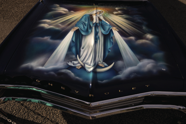 Our cultural relationship with grief is visible even in car culture. A West Side native whose family ran the Block-Salazar Mortuary for fifty-six years tells me, “Death has been reflected in a whole different way here. We grieve. And we remember. That’s a strong part of our cultural heritage.” For many, the lowrider becomes a vessel of memory: “a living museum,” he calls it. “People who lost a brother, a loved one, have a mural of him painted on the hood of a lowrider. They say, ‘I wanted to carry him with me.’” In this way, our devotion transcends churches and graveyards.