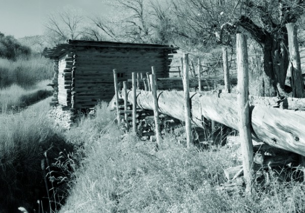 Notes at the Library of Congress credit the mill as the only example of Spanish Colonial gristmills “powered by a rodenzo, a horizontal water wheel, that is currently operational in the United States…and is a rare survivor of a once prevalent feature of eighteenth- and nineteenth-century rural northern New Mexico.” Martin Stupich, Barela de Truchas Molino, Courtesy of Library of Congress, Prints and Photograph Division. Creator: Historic Ameri- can Engineering Record. Negative number: HAER NM 14A-1.